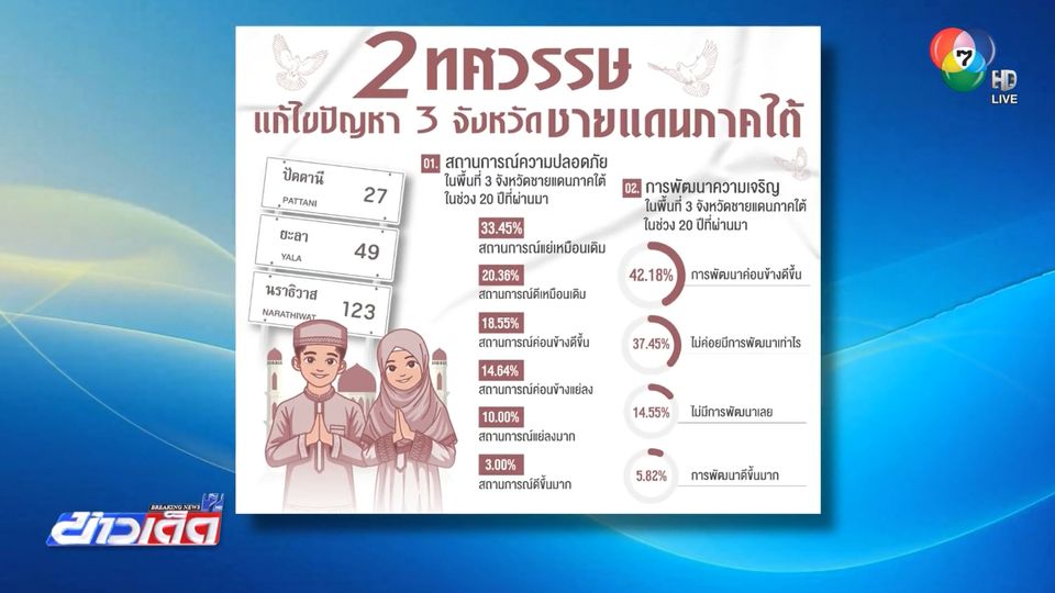 ข่าวเด็ด 7 สี - นิด้าโพล เปิดผลสำรวจประชาชน 3 จังหวัดชายแดนใต้ กับ 2 ทศวรรษ แก้ไขปัญหาสามจังหวัดชายแดนภาคใต้