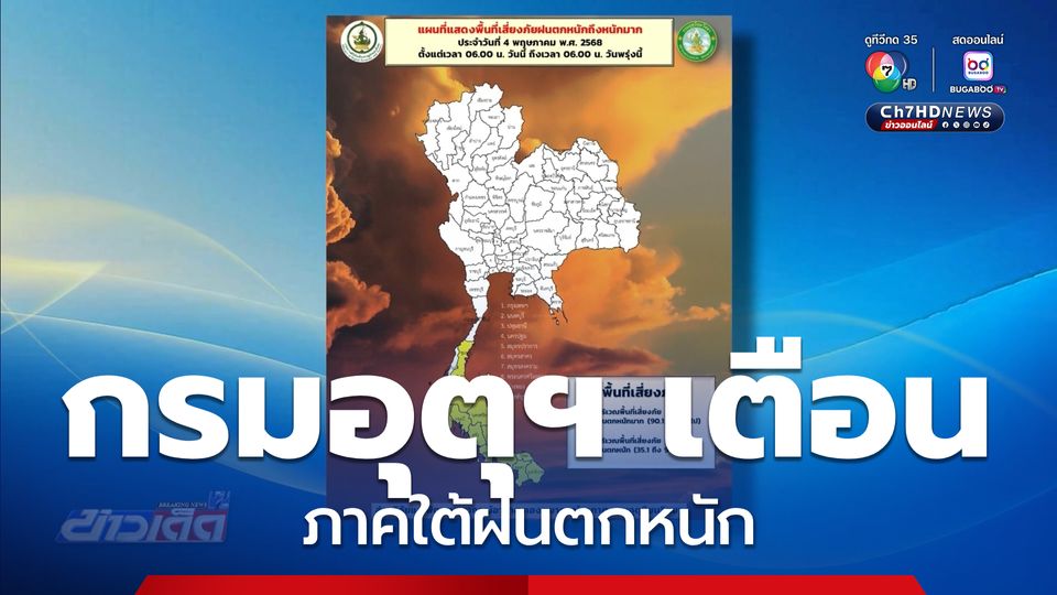 ข่าวเด็ด 7 สี - กรมอุตุนิยมวิทยา เตือน ภาคใต้ฝนตกหนัก ส่วนกรุงเทพมหานครและปริมณฑล ฝนตก 40% ของพื้นที่ ช่วงบ่ายถึงค่ำ