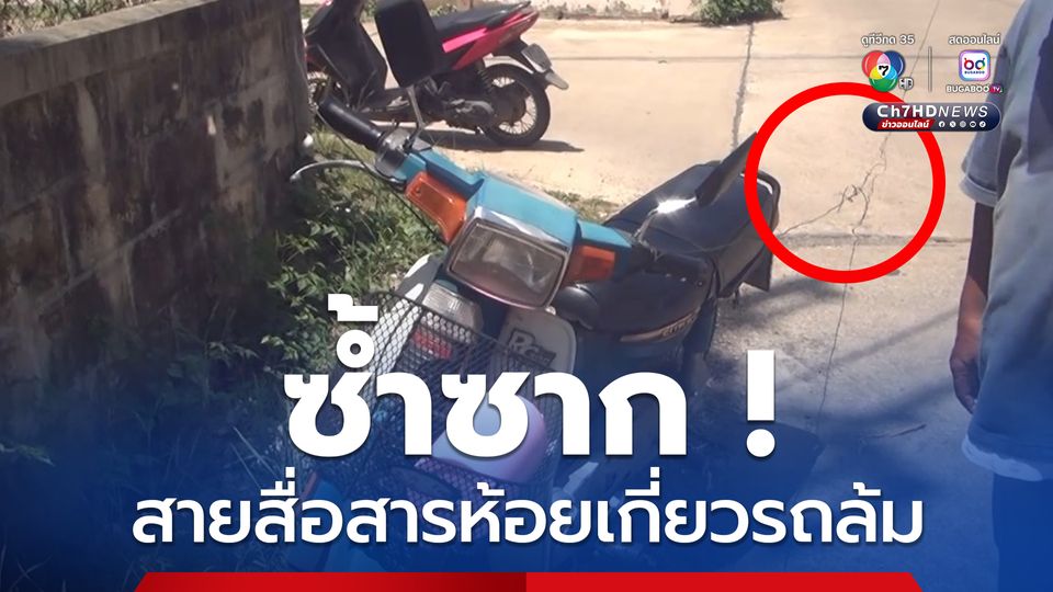 วันนี้ (4 พ.ค.68) ศูนย์วิทยุสื่อสารภูธรลำปางรับแจ้งมีอุบัติเหตุรถจักรยานยนต์ล้มและมีผู้บาดเจ็บ เหตุเกิดที่บริเวณ ปากทางซอยในหมู่บ้านสายลมจอย ถนนจามทเทวี ในเขตเทศบาลนครลำปาง อำเภอเมืองลำปาง พบคุณตาอายุ 72 ปี ชี้ให้ดูที่เกิดเหตุพร้อมเล่าว่า ก่อนเกิดเหตุได้ขี่รถจักรยานยนต์ออกจากบ้านเพื่อไปทำธุระในตัวเมืองลำปาง ในขณะขี่รถมาถึงที่เกิดเหตุได้มีรถจักรยานยนต์ชายวัยรุ่นขี่อยู่ด้านหน้าตนเอง และไม่ทันระวังรถจักรยานยนต์ของตนเองได้ถูกสายสื่อสารที่ตกลงมาห้อยอยู่กลางถนนเกี่ยวหน้ารถจักรยานยนต์จนล้มลงและได้รับบาดเจ็บมีบาดแผลถลอกตามร่างกายหลายแห่ง รีบตั้งสติประคองรถจักรยานยนต์เข้าข้างทางป้องกันเกิดอุบัติเหตุซ้ำและแจ้งเจ้าหน้าที่เข้ามาช่วยเหลือพร้อมทั้งช่วยกันเก็บสายสื่อสารเข้าไว้ข้างทางเพื่อป้องกันรถที่ผ่านไปมาเกิดอุบัติเหตุขึ้นได้