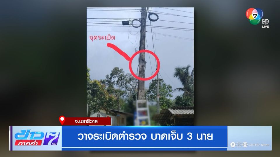 ข่าวภาคค่ำ - ตำรวจนราธิวาส ถูกผู้ก่อความไม่สงบลอบวางระเบิด ได้รับบาดเจ็บ 3 นาย