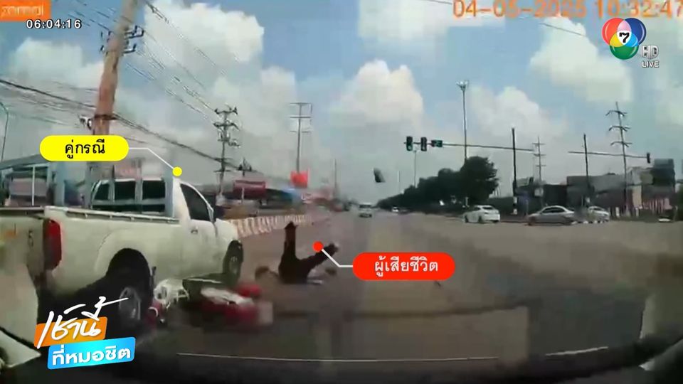 เช้านี้ที่หมอชิต - อุทาหรณ์ รถกระเช้าขับเกี่ยวสายไฟฟ้าแรงสูงขาดตกพื้น รถจักรยานยนต์ขี่ตามหลังมา ถูกสายไฟเกี่ยวล้อรถจนเสียหลักล้ม คนขี่ถูกรถกระบะทับศีรษะซ้ำเสียชีวิต