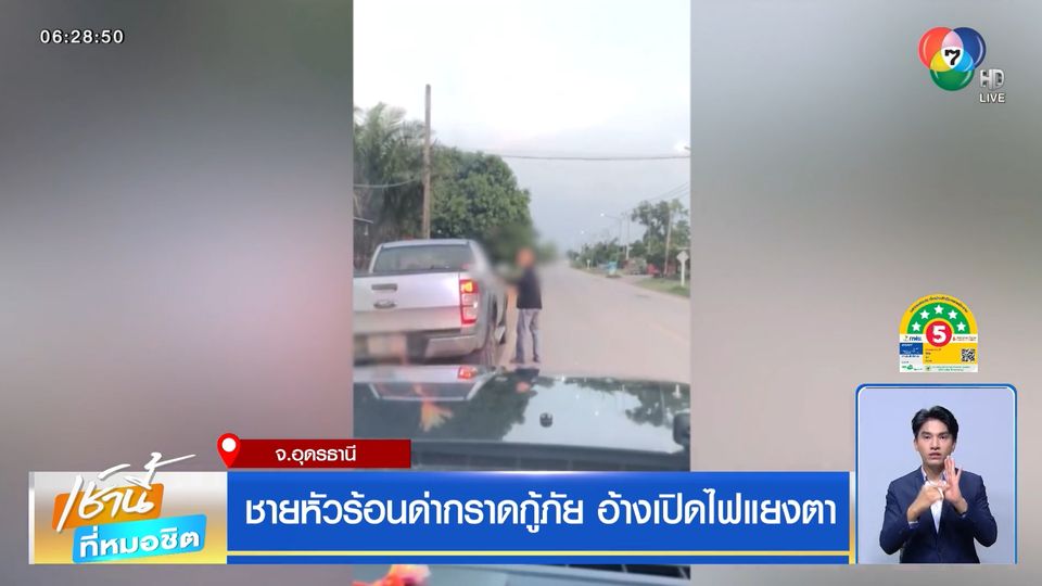 เช้านี้ที่หมอชิต - อย่างนี้ก็มีด้วย จังหวัดอุดรธานี มีชายคนหนึ่งไม่รู้หัวร้อนมาจากไหน ขับรถกระบะปาดหน้ารถอาสากู้ภัย และด่ากราดกลางถนน หาว่าอาสากู้ภัยฯ เปิดไฟแยงตา