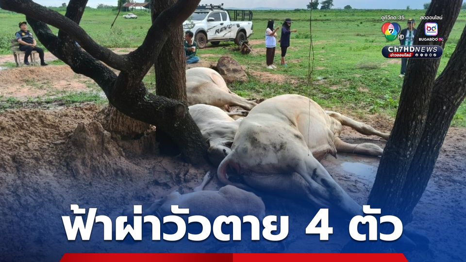 ฟ้าผ่าวัวตาย 4 ตัว หลังเกิดฝนตกฟ้าคะนองในพื้นที่บ้านตะกุดรัง ต.อุดมทรัพย์ อ.วังน้ำเขียว จ.นครราชสีมา ทางเจ้าหน้าที่เข้าตรวจสอบฟ้าผ่าวัวตายจริง ไม่ได้เกิดเชื้อโรค
