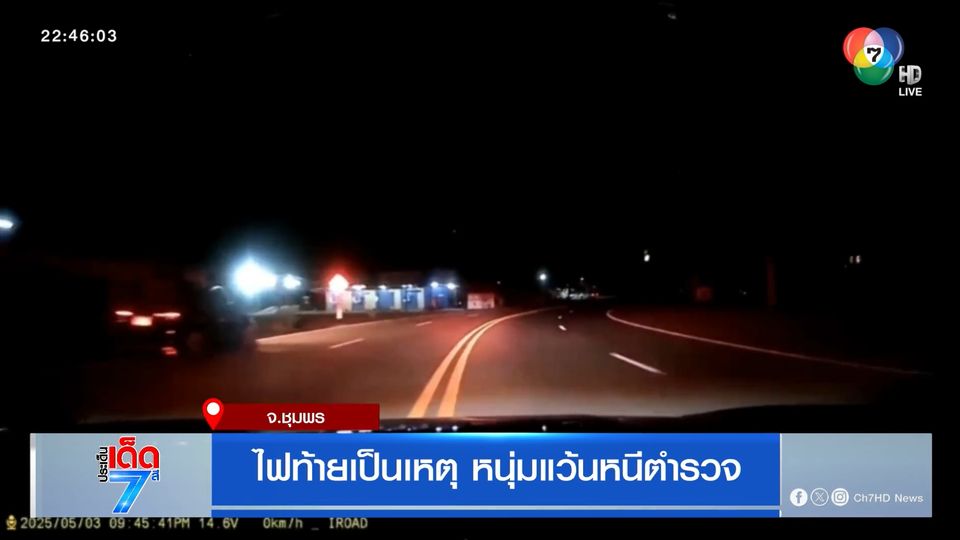 ประเด็นเด็ด 7 สี - งานนี้ตำรวจทางหลวงมีเคือง ขับผ่านมาอุตส่าห์หวังดี จะเตือนรถจักรยานยนต์ ที่ขี่มาว่าไฟท้ายไม่ติดนะ ถนนมันมืดให้ระวัง ปรากฏว่าคนขี่ดันแว้นหนีสุดชีวิต สุดท้ายแหกโค้งล้มกลิ้ง