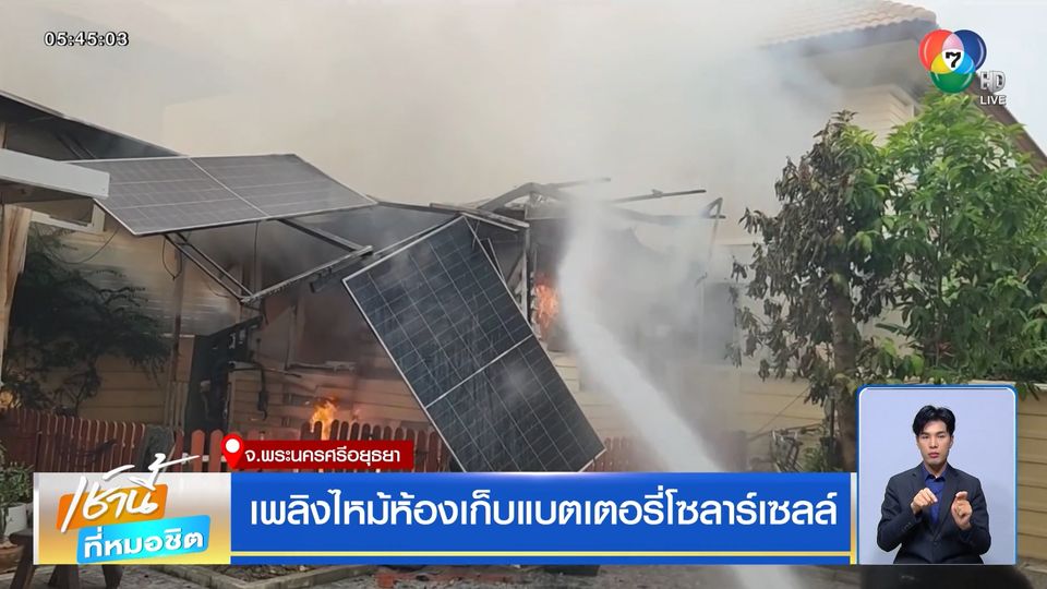 เช้านี้ที่หมอชิต - เกิดเพลิงไหม้ห้องเก็บแบตเตอรี่ พลังงานโซลาร์เซลล์ ที่ใช้งานมาหลายปี เบื้องต้นคาดว่าน่าจะเกิดจากแบตเตอรี่เสื่อมจนไฟฟ้าช็อก หรือจากความร้อนทำให้แบตเตอรี่ระเบิด