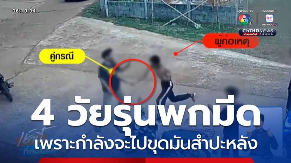 เช้านี้ที่หมอชิต - ที่จังหวัดสกลนคร วัยรุ่น 4 คน จอดรถจักรยานยนต์หาเรื่องวัยรุ่นที่มาคนเดียว แต่แทนที่จะเป็น 4 รุม 1 กลายเป็น 1 รุม 4