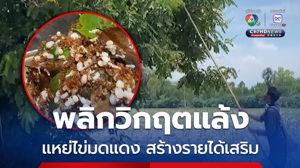 วันนี้ (7 พ.ค. 68) ผู้สื่อข่าวรายงานว่า ชาวบ้านใน ต.รังกาใหญ่ อ.พิมาย จ.นครราชสีมา ได้ออกมาตระเวนแหย่ไข่มดแดงตามถนนในหมู่บ้าน หลังจากว่างเว้นการทำนาปรังช่วงหน้าแล้ง