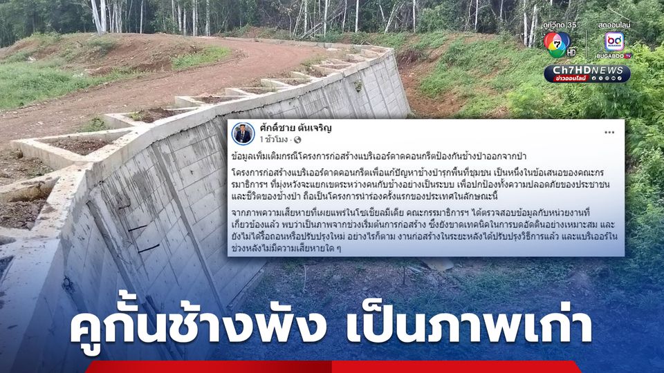 คูกั้นช้างพังเป็นภาพเก่า ยังไม่ได้รื้อถอน แจงช่วงเริ่มก่อสร้างขาดเทคนิคการบดอัดดินอย่างเหมาะสม ในช่วงหลังไม่พบความเสียหาย 14 พ.ค.นี้ กมธ.เชิญหน่วยงานเข้าให้ความเห็นเพื่อปรับปรุงโครงการให้มีประสิทธิภาพสูงสุด