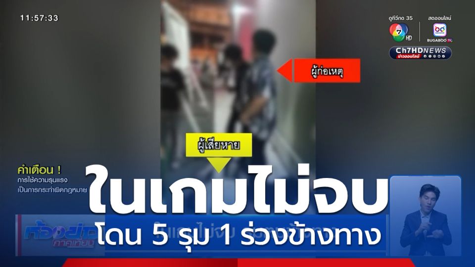 ห้องข่าวภาคเที่ยง - ในเกมไม่จบ นัดเคลียร์กันต่อข้างร้านสะดวกซื้อ งานนี้ ! ใส่ไม่ยั้ง ผู้เสียหายโดย 5 รุม 1 ร่วงลงไปกองกับพื้น