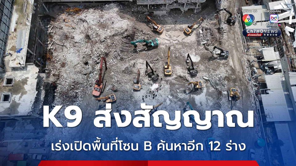 วานนี้พบเพิ่ม 1 ร่างสมบูรณ์ กับอีก 5 ชิ้นส่วน เร่งเปิดพื้นที่โซน B บริเวณชั้นใต้ดิน หลังสุนัข K9 ส่งสัญญาณ อาจมีร่างผู้สูญหายติดค้าง ติดตามให้ครบอีก 12 ราย
