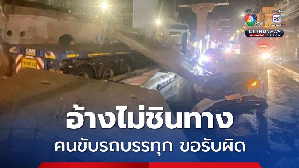 เหตุแผ่นปูนไหลจากรถบรรทุก ทับรถเก๋งได้รับความเสียหาย ย่านลาดกระบัง ล่าสุดคนขับรถบรรทุก น้อมรับผิด อ้างไม่ชินเส้นทาง ขับเข้าเลนพิเศษ แผ่นปูนเกี่ยวแผ่นคานหล่นดังกล่าว