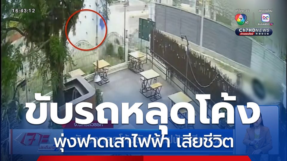เจาะประเด็นข่าว 7HD - อุทาธรณ์ของการขับรถ ขึ้นนั่งหลังพวงมาลัยให้มีสติ หากไม่ชินทางให้ขับรถช้า ๆ อย่างในภาพนี้ คนขับน่าจะไม่ชินทาง ขับเข้าโค้งอย่างเร็ว จนรถเสียหลักพุ่งไปฟาดกับเสาไฟฟ้าอย่างแรง