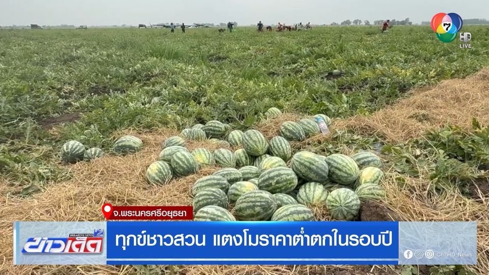 ข่าวเด็ด 7 สี - เกษตรกรสวนแตงโม ยังคงถูกซ้ำเติมจากราคาผลผลิตตกต่ำลงอีก ตอนนี้เหลือเพียงกิโลกรัมละ 2-3 บาท สวนทางกับต้นทุนในการเพาะปลูก