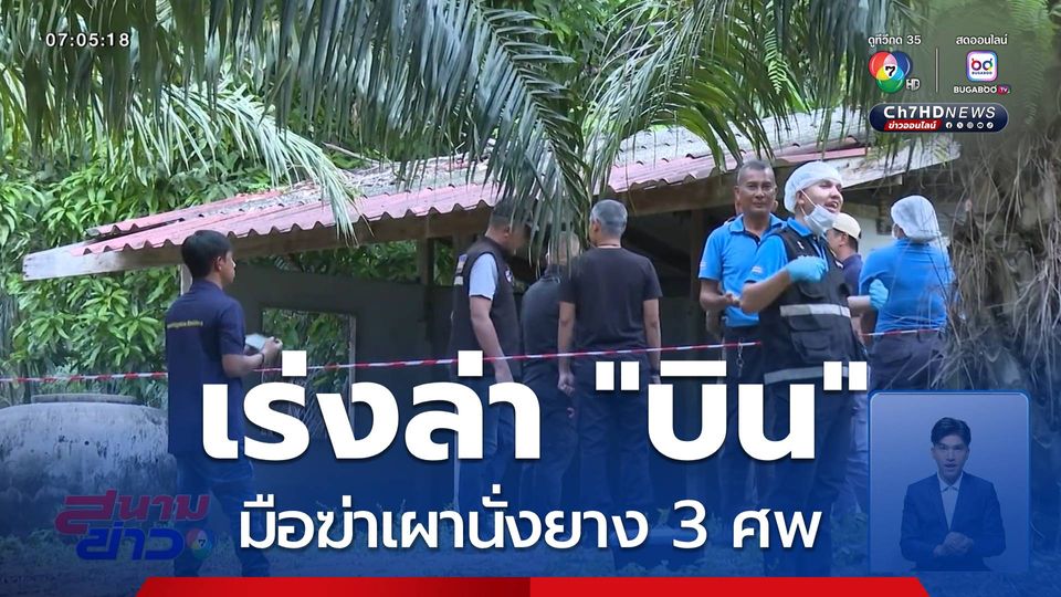 สนามข่าว 7 สี - ตำรวจภาค 9 ระดมทีมสืบสวน ลงพื้นที่จังหวัดตรัง เร่งล่า "ไอ้บิน" มือฆ่าเผานั่งยาง 3 ศพ "โกเชษฐ์" กับลูกน้อง คนดูแลสวนปาล์มน้ำมัน เนื้อที่ 170 ไร่ คาดต้นเหตุขัดแย้งผลประโยชน์ หวังฮุบเอาไปดูแลคนเดียว