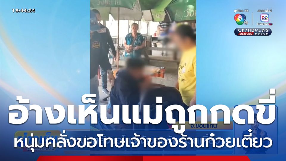 ข่าวเย็นประเด็นร้อน - ที่ จังหวัดขอนแก่น หนุ่มคลั่งเข้ามาทำร้ายคนขายก๋วยเตี๋ยว ซึ่งเป็นนายจ้างของแม่ตนเอง สุดท้ายมามอบตัว อ้างเมากัญชาและเห็นแม่ถูกกดขี่