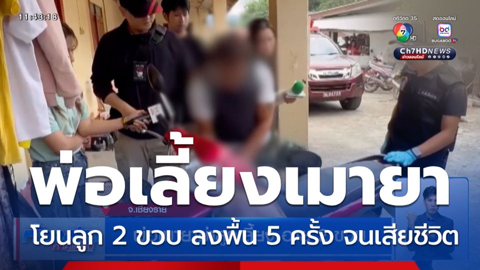 ห้องข่าวภาคเที่ยง - พ่อเลี้ยงโหดเมายาเสพติด จับลูกเลี้ยงอายุ 2 ขวบ โยนลงพื้น 5 ครั้ง จนเสียชีวิต ก่อนนำร่างเด็กไปทิ้งลงแม่น้ำ