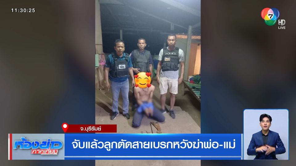 ห้องข่าวภาคเที่ยง - ไปที่จังหวัดบุรีรัมย์ ลูกคนหนึ่งคลุ้มคลั่งแล้วไม่พอใจ พ่อและแม่ สุดท้าย ไปตัดสายเบรกรถจักรยานยนต์พ่อ หวังจะฆ่าพ่อ ทำให้ครอบครัวไม่ทนแจ้งตำรวจจับ
