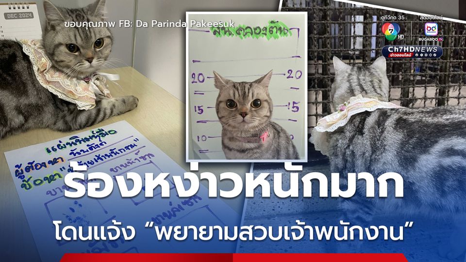 “ขออนุญาตฝากแชร์ รับแจ้งแมวพลัดหลง 1 อัตรา แมวใครหายรีบมารับด่วนที่ สน.คลองตัน ตอนนี้น้องจะสวบร้อยเวรแล้วครับ และทะเลาะกับเจ้าหน้าที่ตำรวจเวร จับตั้งข้อหา ‘พยายามสวบเจ้าพนักงาน’ พรุ่งนี้ฝากขัง!”
