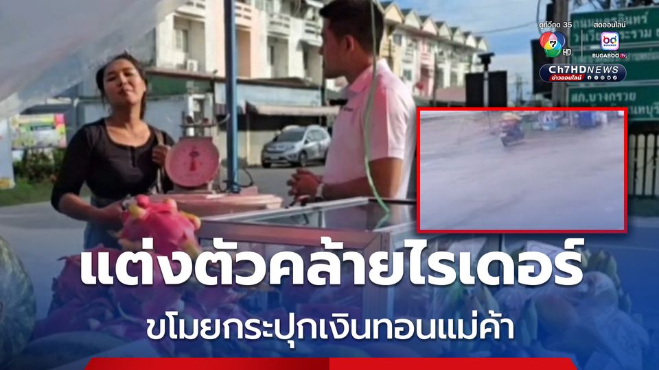 แม่ค้าขายผลไม้ร้องถูกคนร้ายแต่งกายด้วยชุดไรเดอร์ ขี่รถจยย.มาขโมยกระปุกใส่เงินทอนในร้านใช้เวลาไม่ถึง 10 วินาที