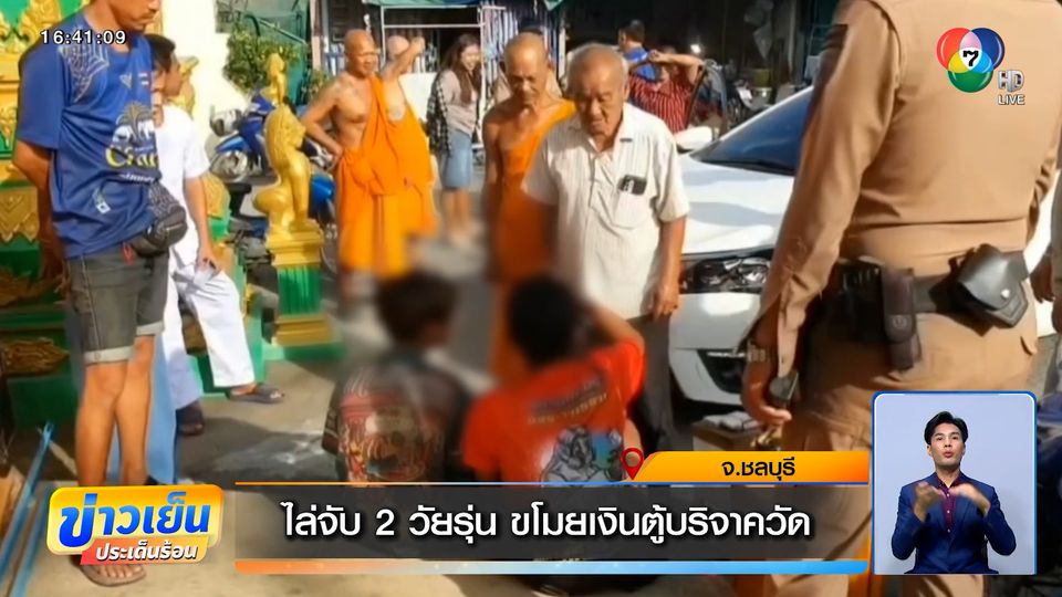 ข่าวเย็นประเด็นร้อน - สองวัยรุ่นงัดตู้บริจาควัด ขี่รถจักรยานยนต์หลบหนี แต่ไม่รู้เพราะรีบหรือกรรมตามทัน รถจักรยานยนต์พุ่งชนกับรถเก๋งชาวบ้านล้มบาดเจ็บ สุดท้ายพระเเละชาวบ้านจับตัวไว้ได้