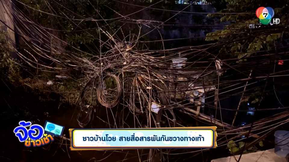 จ้อข่าวเช้า - ชาวบ้านโวย สายสื่อสารพันกันขวางทางเท้า