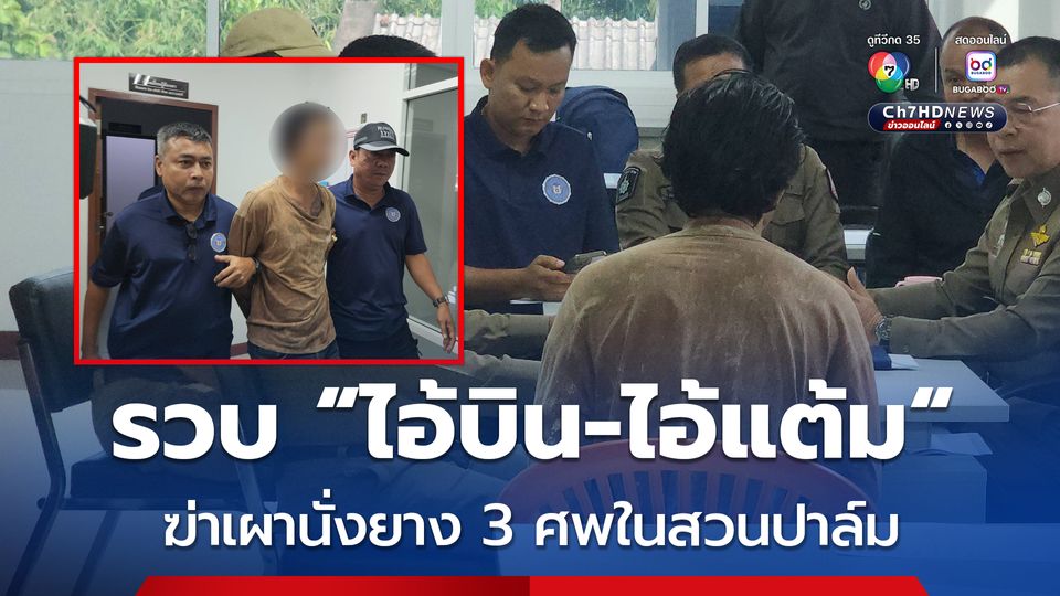 รวบ "ไอ้บิน-ไอ้แต้ม" ผู้ต้องหาฆ่าเผานั่งยาง 3 ศพในสวนปาล์ม ผวาถูกวิสามัญ นำตัวสอบสวน “ไอ้บิน” รับสารภาพตลอดข้อกล่าวหา ส่วนผู้ต้องหาอีก 2 ราย หลบหนีในพื้นที่ภูเขา ตำรวจกดดันหนักให้ยอมมอบตัว