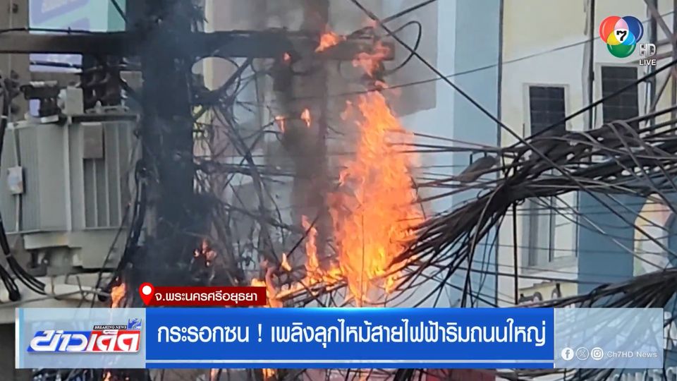 ข่าวเด็ด 7 สี - เกิดเหตุเพลิงไหม้สายไฟและสายเคเบิล ริมถนนสายเอเชีย ขาล่องเข้ากรุงเทพฯ ช่วงจังหวัดพระนครศรีอยุธยา