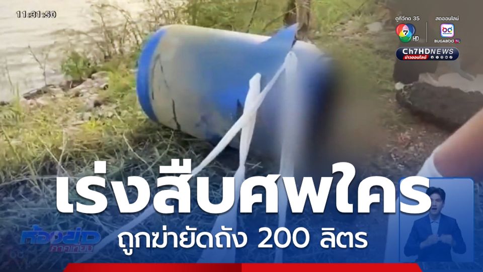 ห้องข่าวภาคเที่ยง - ตำรวจ เร่งคลี่ปมชายอายุประมาณ 50 ปี ถูกฆ่ายัดถังขนาด 200 ลิตร ทิ้งในอ่างเก็บน้ำ พบเบาะแสเสื้อที่สวมใส่เป็นเสื้อแจกของร้านทองแห่งหนึ่ง ในจังหวัดเพชรบูรณ์