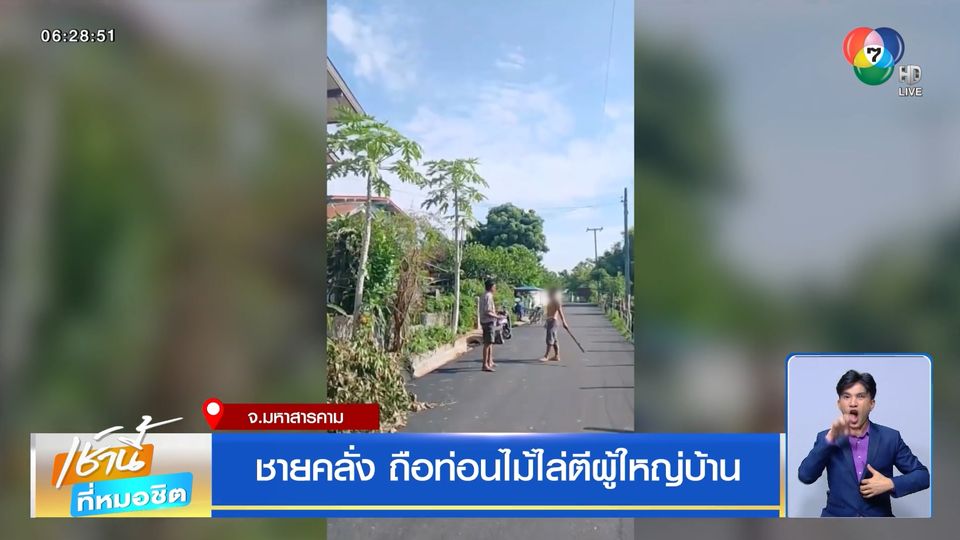เช้านี้ที่หมอชิต - ชายคลุ้มคลั่งใช้ท่อนไม้ไล่ตีผู้ใหญ่บ้าน ซึ่งมีผู้ใช้โทรศัพท์มือถือบันทึกภาพเอาไว้ได้