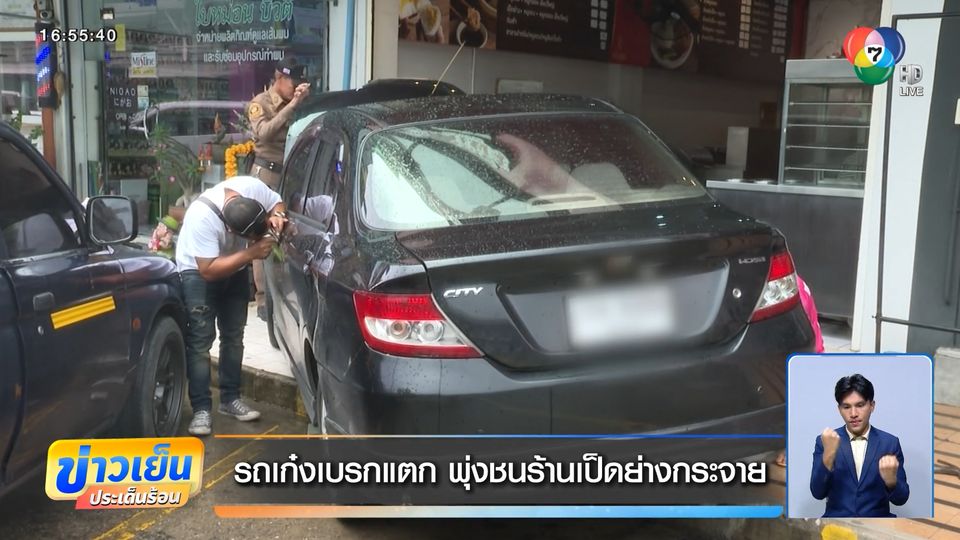 ข่าวเย็นประเด็นร้อน - รถเก๋งระบบเบรกเกิดเหตุขัดข้อง กลัวจะพุ่งชนคันข้างหน้าเลยหักเข้าข้างทาง ปรากฎพุ่งเข้าร้านเป็ดย่าง กระจายเกลื่อน เคราะห์ดีมีพนักงานร้าน ถูกน้ำร้อนลวก 1 คน