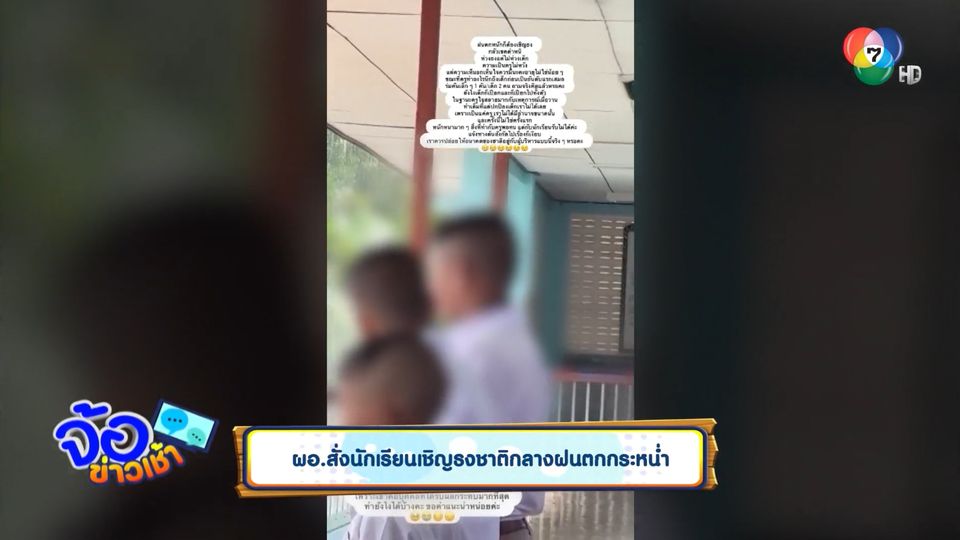 จ้อข่าวเช้า - ผอ.สั่งนักเรียนเชิญธงชาติกลางฝนตกกระหน่ำ