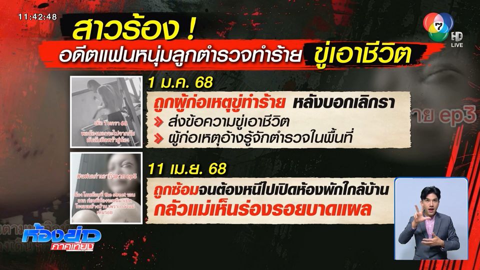 ห้องข่าวภาคเที่ยง - หนุ่มแฟนเก่าเอาถึงตาย ! อดีตแฟนสาวร่ำไห้ ตกเป็นเหยื่อความรุนแรง ทั้งต่อหน้าคนอื่นในที่สาธารณะ และโดนทุบตีในห้องพัก จนฟกช้ำไปทั้งตัว