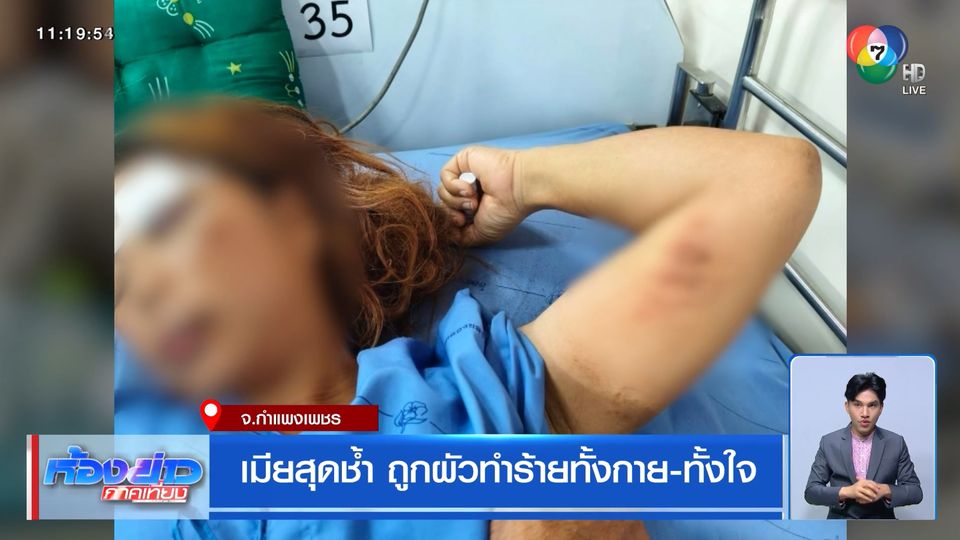 ห้องข่าวภาคเที่ยง - เรื่องราวผัว-เมีย หญิงคนหนึ่ง ต้องอยู่อยากหวาดกลัว เพราะถูกผัวทำร้ายจิกหัวลากไปกับถนน แล้วขี่รถจักรยายนต์ชนจนเจ็บปางตาย แต่ผู้ก่อเหตุยังลอยนวล