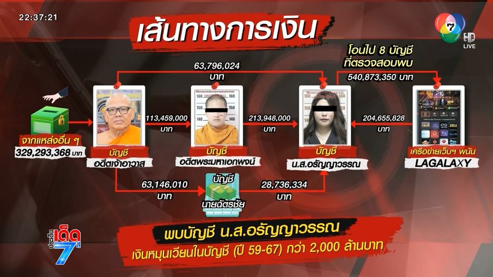 กว่าจะมาถึง อดีตเจ้าอาวาส โอนเงินด้วยตัวเอง ฝาก นายเอกพจน์ หรือ อดีตพระมหาเอกพจน์ และ พันจ่าเอก ฉัตรชัย แฟนหนุ่มของ หมอเตย โอนให้ตั้งแต่ปี 2559 รวม ๆ แล้วกว่า 2,000 ล้านบาท