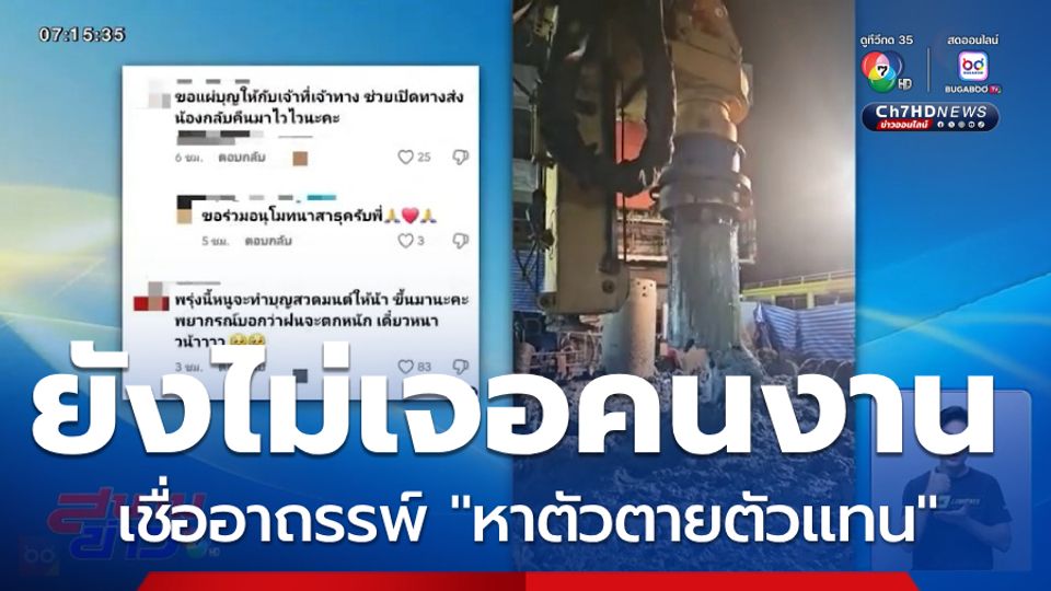 สนามข่าว 7 สี - เช้านี้ เข้าสู่วันที่ 5 ของการค้นหาคนงานตกหลุมเจาะเสาเข็มโครงการก่อสร้างสถานีรถไฟฟ้าหลานหลวง เจ้าหน้าที่ยังไม่สามารถนำร่างขึ้นมาได้ หลังจากขุดลึกลงไป 10 เมตร