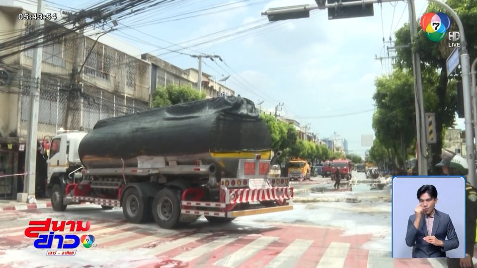 สนามข่าวเสาร์-อาทิตย์ - เจ้าหน้าที่เคลื่อนย้ายรถบรรทุกน้ำมันที่ชนกับรถเทรลเลอร์ พลิกตะแคงขวางถนนสุขสวัสดิ์ ออกจากพื้นผิวการจราจรได้แล้ว พร้อมเปิดใช้เส้นทาง และให้ชาวบ้านกว่า 200 คน กลับเข้าไปอาศัยในบ้าน
