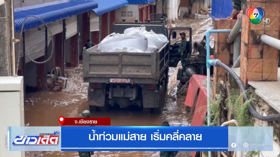 ข่าวเด็ด 7 สี - สถานการณ์น้ำท่วมในอำเภอแม่สาย เริ่มคลี่คลาย แต่ทหารก้เร่งเสริมบิกกแบ็ก เพ่อปผ้องกันน้ำไหลหลากเข้าท่วมซ้ำ