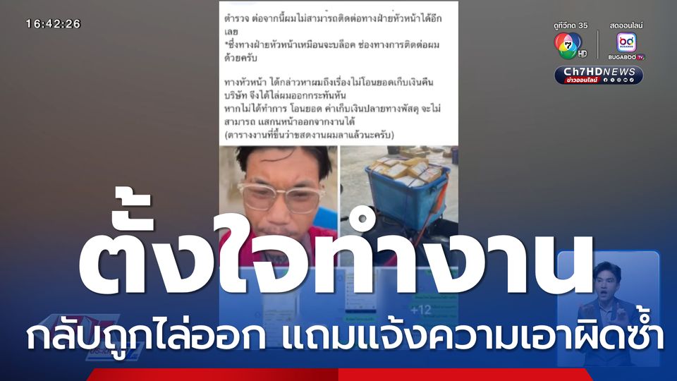 เจาะประเด็นข่าว 7HD - ในยุคที่ทุกคนต่างก็ต้องดิ้นรนทำมาหากิน เพราะเศรษฐกิจฝืดเคือง แต่มีหนุ่มพนักงานส่งพัสดุรายหนึ่งถูกโชคชะตาเล่นตลก ตั้งใจทำมาหากิน แต่กลับถูกหัวหน้างานไล่ออก แถมแจ้งความเอาผิดซ้ำ