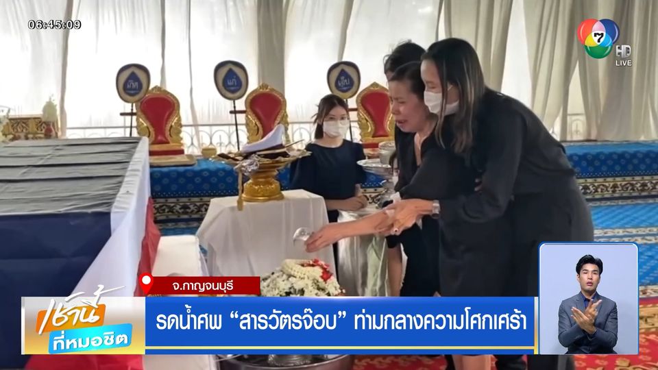 เช้านี้ที่หมอชิต - ร่างของ สารวัตรจ๊อบ ที่เสียชีวิตจากเหตุเฮลิคอปเตอร์ของสำนักงานตำรวจแห่งชาติตก ถูกส่งถึงภูมิลำเนาจังหวัดกาญจนบุรี ก่อนที่จะมีพิธีรดน้ำศพช่วงเย็นวานนี้