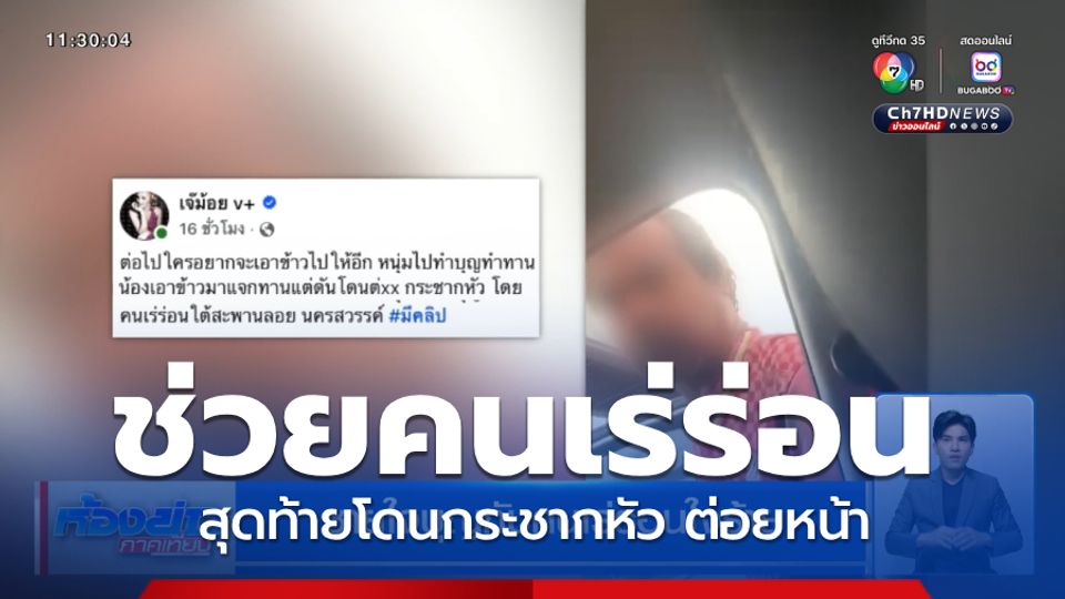 ห้องข่าวภาคเที่ยง - ต่อไปนี้ ใครอยากทำบุญ ทำทาน กับคนเร่ร่อน ต้องระมัดระวังตัว เพราะอาจจะเจอคนเร่ร่อนหัวร้อนกระชากหัว ต่อยหน้า แบบผู้ชายคนนี้
