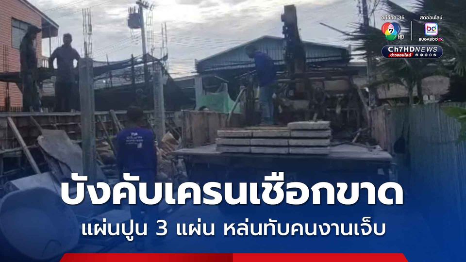 ลุงวัย 65 บังคับเครนยกแผ่นปูนลงจากรถเฮี๊ยบ แต่เชือกขาดทำให้แผ่นปูน 3 แผ่น หล่นลงมาทับ หมดสติ บาดเจ็บสาหัส หัวไหล่เป็นแผล ศีรษะแตก และขาขวาหัก