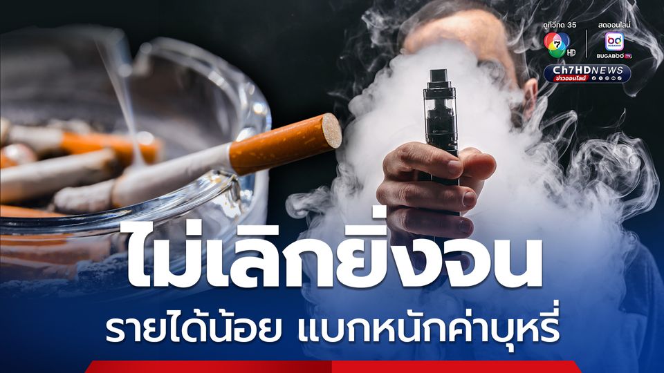 ไม่เลิกยิ่งจน รายได้น้อย 1-6 พันบาทต่อเดือนแบกหนักค่าบุหรี่ 60% ของรายได้ ขณะที่เหยื่อบุหรี่ไฟฟ้าล่าสุด อายุเพียง 1.7 ขวบ ล่อใจทั้งทอยพอด นิโคตินถุง พอดจมูก ไม่มีควัน ไม่มีกลิ่น แต่นิโคตินสูงกว่าหลายเท่า