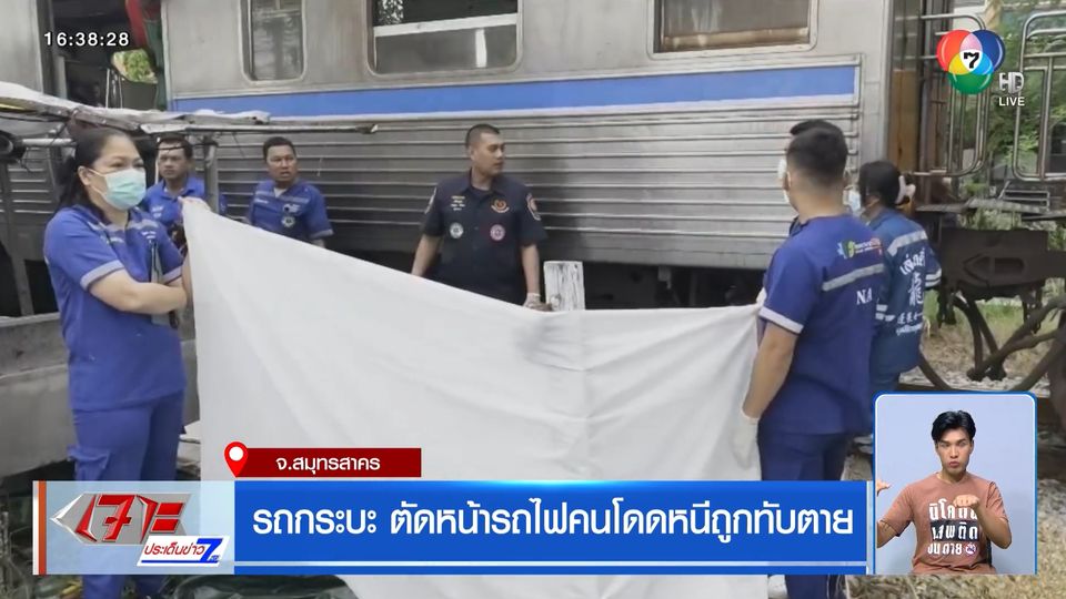 รถกระบะ ตัดหน้ารถไฟคนโดดหนีถูกทับตาย จ.สมุทรสาคร
