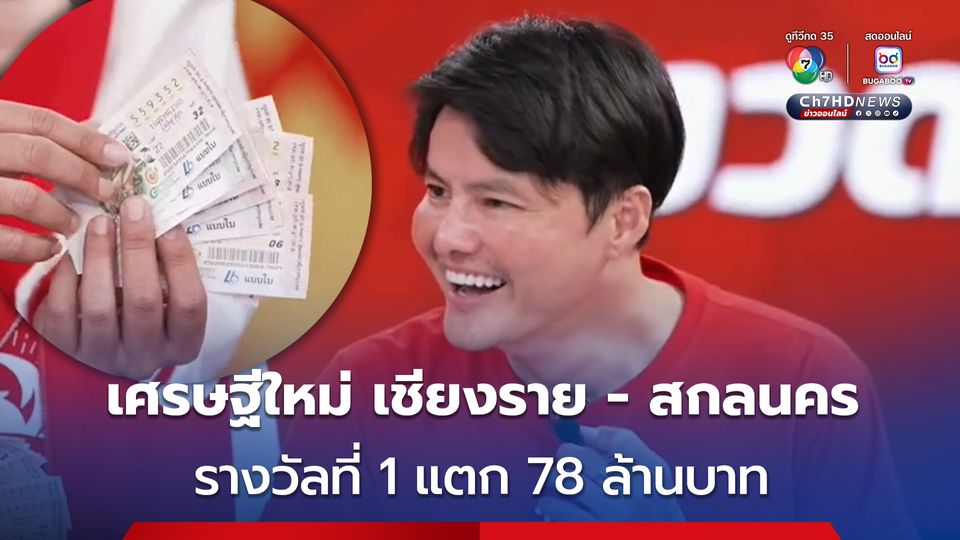 ลอตเตอรี่พลัส รางวัลที่ 1 แตก 78 ล้านบาท ทั้งหมดจำนวน 13 ใบ งวดนี้ ส่งเงินก้อนโตให้เศรษฐีใหม่ 2 จังหวัด เชียงราย และ สกลนคร
