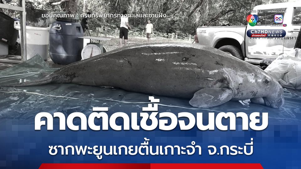 เจ้าหน้าที่ ศวอล. ทำการผ่าชันสูตร ซากพะยูนเกยตื้นที่เกาะจำ จ.กระบี่ สรุปสาเหตุการตายมาจากภาวะการติดเชื้อภายในร่างกาย