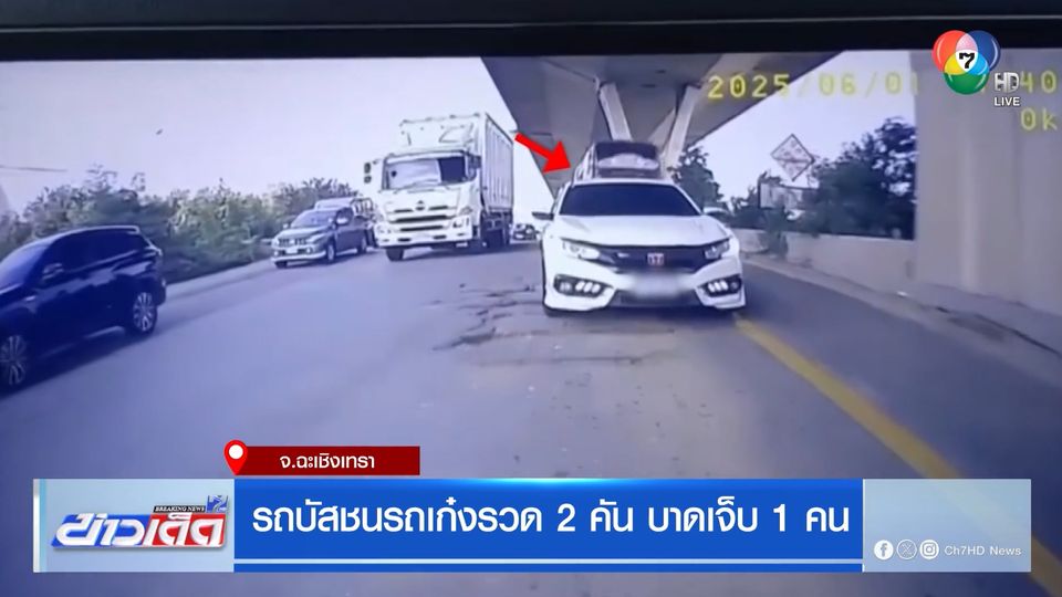 คลิปกล้องหลังรถยนต์ บันทึกภาพนาทีที่รถบัสขับพุ่งชนท้ายรถเก๋ง 2 คันรวด บนถนนเทพรัตน บางนา-ตราด กิโลเมตรที่ 35 ช่องทางด่วน ขาเข้ากรุงเทพฯ อำเภอบางปะกง จังหวัดฉะเชิงเทรา ช่วงที่รถชะลอตัว ทำให้มีผู้ได้รับบาดเจ็บ 1 คน หลังเกิดเหตุกู้ชีพนำผู้ได้รับบาดเจ็บส่งโรงพยาบาล เหตุเกิดเวลา 17.40 น. วันนี้