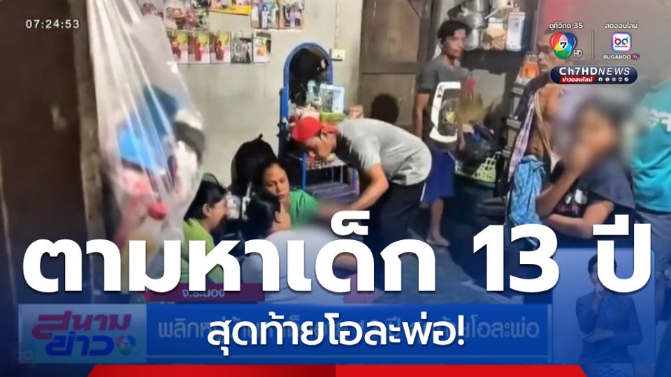สนามข่าว 7 สี - ระดมกู้ภัยและชาวบ้านหลายสิบคนเพื่อค้นหาเด็กชายอายุ 13 ปี ซึ่งทางครอบครัวแจ้งว่าหายตัวไปอย่างปริศนา โดยการค้นหาร่วม 4 ชั่วโมง ผลปรากฏตามหาเด็กจนเจอ แต่งานนี้โอละพ่อ
