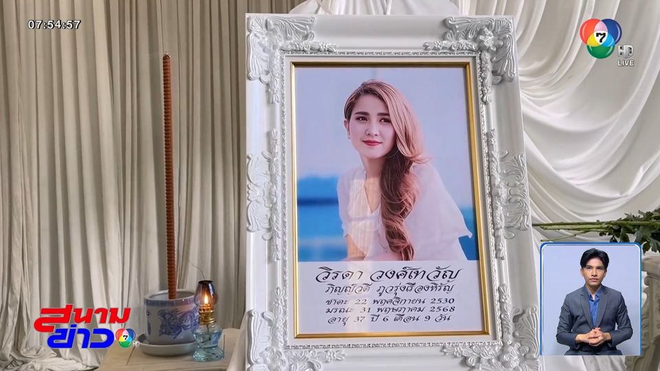 สนามข่าว 7 สี - น้ำตาท่วมพิธีรดน้ำศพ "วิรดา" น้องสาว "กุ้ง สุทธิราช" พระเอกลิเกและนักน้องลูกทุ่งชื่อดัง ซึ่งเสียชีวิตจากโรคไข้เลือดออก เมื่อวานเหล่าคนดัง และแฟนคลับ ร่วมพิธีแน่นบ้านวงศ์เทวัญ