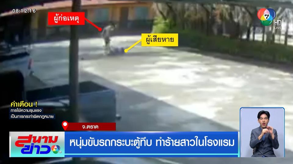 สนามข่าว 7 สี - ชายขับรถตู้ทึบขวางรถสาว ก่อนไล่เตะจนลงไปกองกับพื้น แล้วยังกระชากตัวขึ้นรถตู้ทึบขับหนี ตำรวจ สภ.เมืองตราด ส่งชุดสืบสวนแกะรอยหารถตู้ทึบ