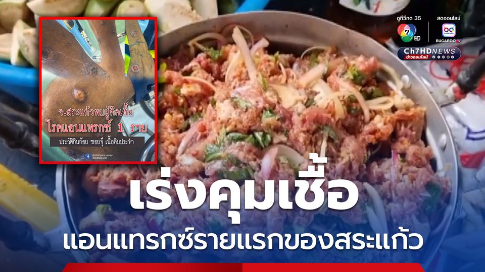 เร่งควบคุมโรค ค้นหากลุ่มเสี่ยง หลังพบผู้ป่วยโรคแอนแทรกซ์รายแรกของสระแก้ว ให้ประวัติกินก้อย ซอยจุ๊ เป็นประจำ เพิ่งกินเนื้อดิบก่อนป่วย 1 สัปดาห์